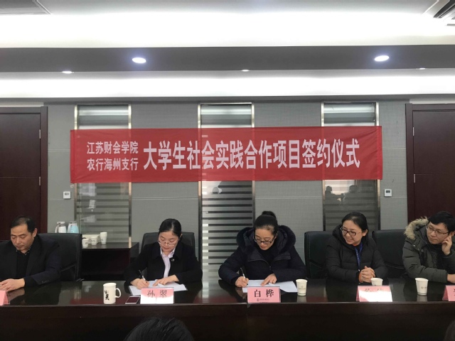 为进一步完善社会实践活动的育人机制,培养全面发展、适应性强的综合型人才,我校财金系与农业银行海州支行合作开展了大学生进银行的实践活动。1月2日下午,大学生社会实践合作项目签约仪式在农业银行海州支行举行,财金系主任白桦、农行海州支行副行长孙翠及金融专业部分老师参与了本次签约仪式。