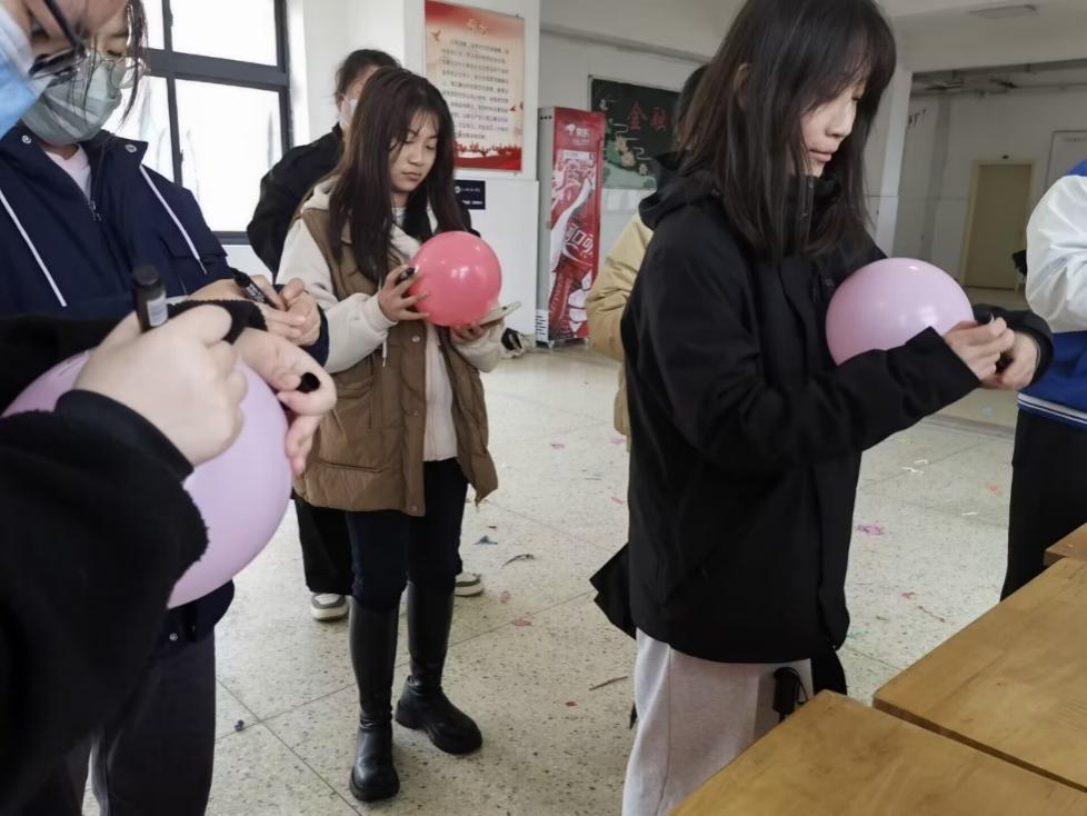 此次活动主要包括“踩爆烦恼”和“爱心健康树”两个部分。“踩爆烦恼”这一活动主要是通过大家喜闻乐见的踩气球方式,在气球上写下自己在学习、生活或其他方面遇到的各种烦恼,随后用脚踩爆气球来减轻压力;另一活动“爱心健康树”主要通过在便利贴上书写下自己心中的烦恼,其它参与者随机解答或者给予宽慰的话语,然后解答、宽慰后的烦恼以书写的形式贴在“小树”上来帮助倾诉者解压。在这两项有趣轻松的活动中,同学们都呈现出了一片积极向上、轻松愉悦的良好氛围,每个人都真正的融入到了活动之中,享受游戏带给内心的欢快。