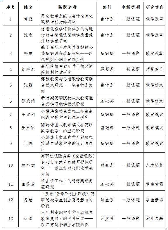 5月5日上午9点半至12点,校学术委员会在行政楼304会议室召开本年度第一次学术委员会全体会议。会上,各位委员在前期审阅课题申报材料的基础上,对本次申报的22项校级课题进行分组评审及最后全体评审认定。以下13项课题拟立项为2017年度校级课题,特此公示。公示期自5月8日至5月12日,附表如下。