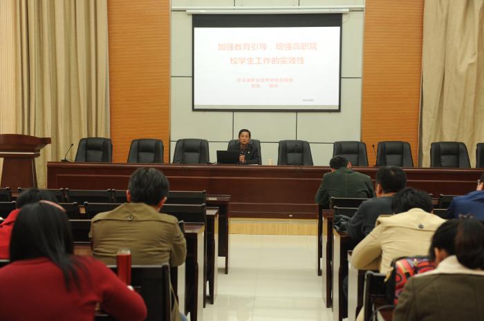 为了进一步提升学生管理工作队伍的专业化、职业化水平,我校邀请市职业技术学院宣传部时泉部长来作关于学生管理工作的专题讲座,报告以“加强教育引导、增强高职院校学生事务管理的实效性”为主题。