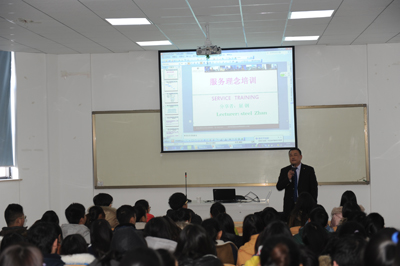 为培养学生的职业意识,让学生对未来的职业规划有初步认识,社科系邀请花果山大酒店展钢总经理于12月11日下午来我校举行讲座,社科系商务英语和应用韩语专业的学生听取了展钢总经理关于职业发展规划的讲座。 展总讲课风趣幽默,讲座一开始便吸引了学生的注意力,他以贴近学生的语言和生动有趣的生活故事为学生阐述了未来可能的发展方向以及现阶段应该树立的观念和目标。通过这次讲座,学生对酒店管理这一行业产生了浓厚的兴趣,并提出许多相关问题,比如酒店的就业岗位,从事酒店行业的要求等,展总都一一给予了详尽回答。 社科系将积极与花果山大酒店、海州湾大酒店、云台山景区管委会等酒店、旅游单位联系,为学生实习和就业开辟广阔的空间。 社科系 2013年12月12日 |